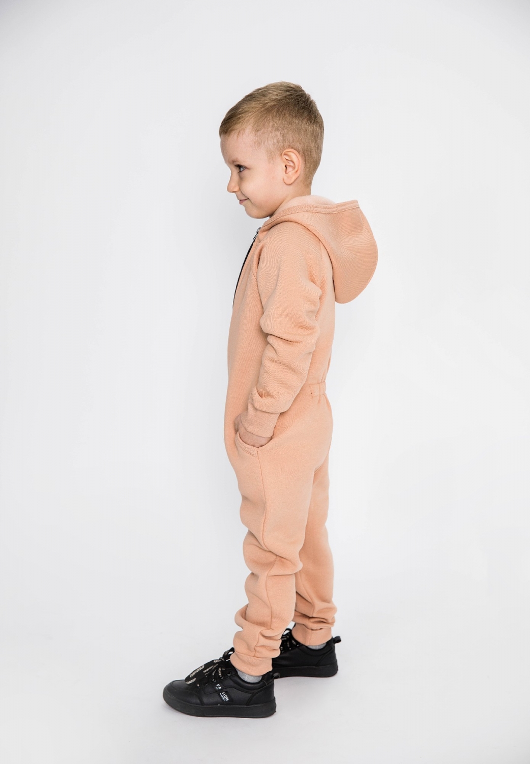 318-К. Комбинезон на молнии с капюшоном, капучино, хлопок 65%, 35% ПЭ, 3 нитка толстовка (начёс) 86,92,98,104