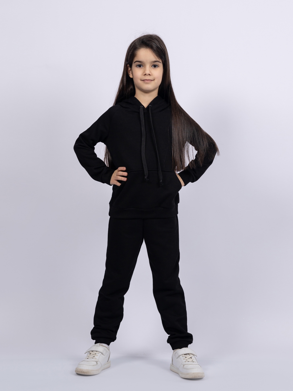 311-Ч. Свитшот с капюшоном + Штаны, хлопок 65%, 35% ПЭ, 3-х нитка ( без начеса) черный 98,104,110,116